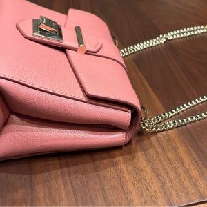 Wear her crossbody or doubled up for a shoulder bag! No tag but new and pristine! Still has the protective tape on the outside buckle. She’s a perfect spring color!
