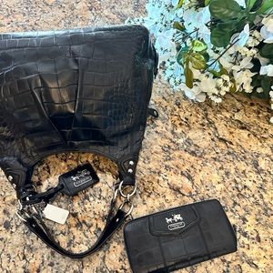 COACH ❤️ MADISON CROC EMBOSSED PATENT LEATHER ~LIMITED EDITION~ Bag & Wallet Set