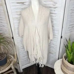 - AMERICAN EAGLE Women's Boho Open Front Cardigan Kimono Sweater Short Sleeve Ivory One Size -