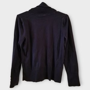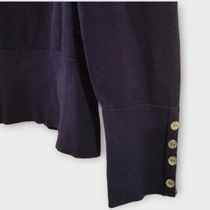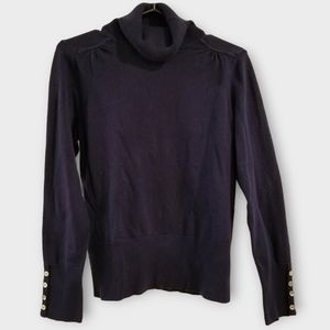 Lightweight cotton knit turtleneck sweater with button detail on the sleeves.