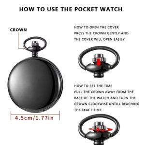 Pocket Watch US Marine Corps Steampunk Chain Quartz Analog Retro with Gift Pouch
