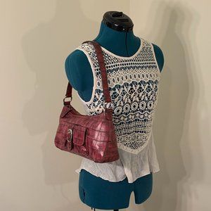 Nine West Pink/Red Shoulder bag in baguette style , Single short straps. One pocket outside, three large pockets inside. Zip up for closure. Strap is 10"long,
