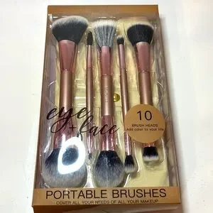 Beautiful, 10 brush, heads, angled contour, brush, large powder, brush, spoolie brush angled, eyebrow brush, blush brush, tapered, highlighter, brush, medium, blending, brush, blending brush, foundation, brush, and concealer, brush, all brand new still in original packaging