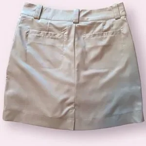 Khaki/stone golf skort in like-new condition. Front slash pockets have zippers. Lightweight short liner. Comfortable poly/spandex blend. See photos for measurements.