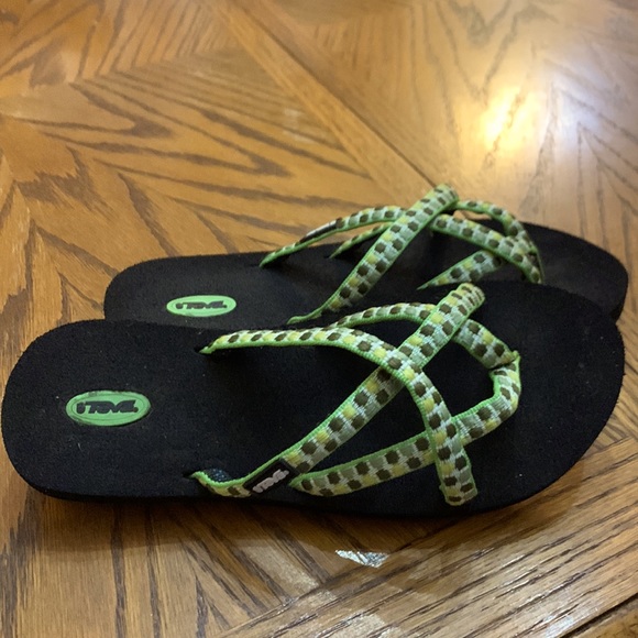Teva Olowahu Strappy Flip Flops Green Yellow White Pattern Size 7