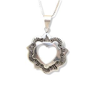 Vintage Organically Antiqued Tyrolean Silver Heart Pendant 18"