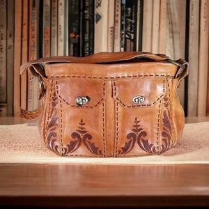 Vintage 1970s Tooled Leather Shoulder Bag