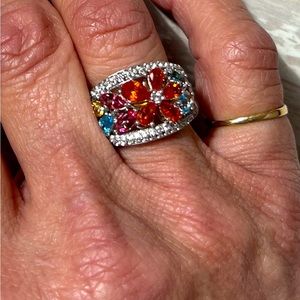 Sterling silver flower ring with pink, blue, green & yellow topaz jewels. Like new. Size 7