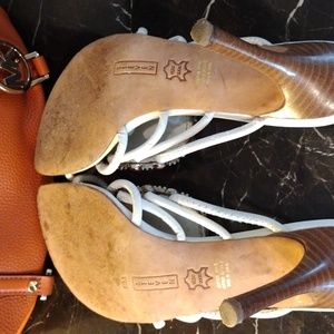 Beautiful gently worn sandals size 8m heels 4 inches beautiful medallion on top real leather nice with a sun dress or pants