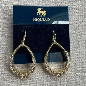 NWT drop earrings. Gold with clear crystals on side, lower stones are a pinkish brown hue to them. Includes original Niquea.d bag.