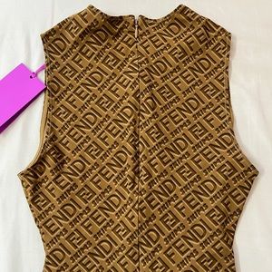 SKIMS x FENDI High Neck Romper Bodysuit Mid Thigh Short Onesie Brown Sleeveless