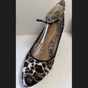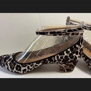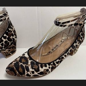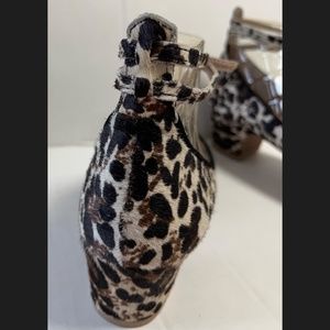 Anthropologie Pilcro and the Letterpress Calf Hair Leopard Print Ankle Heels.