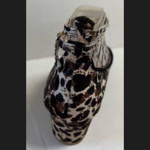 Anthropologie Pilcro Letterpress Calf Hair Leopard Print Ankle Heels Strappy 8M
