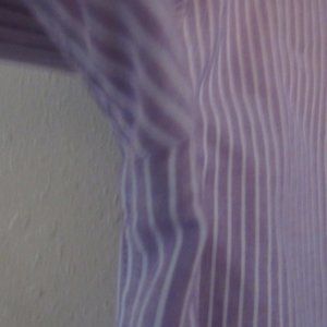 Mens short sleeve Oxford shirt. Size 161/2 Purple and white strips. 60 % cotton 40% polyester. Stafford travel wrinkle free oxford. #112