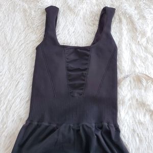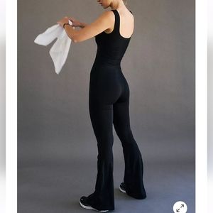 Features: Breathable, barely-there feel, moves-with-you stretch, scoop-neckline with fixed shoulder straps, low back, ribbed knit waistband, flared legs