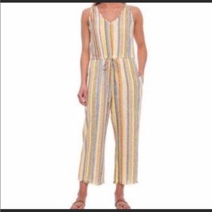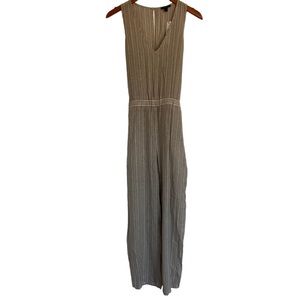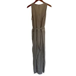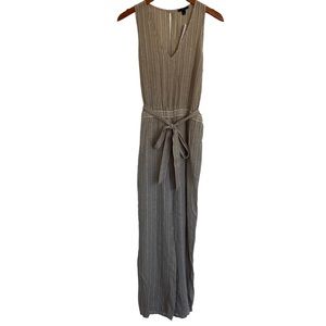NWT Anthropologie Drew Khaki Striped Jumpsuit Wide Leg Size Small Tie Waist