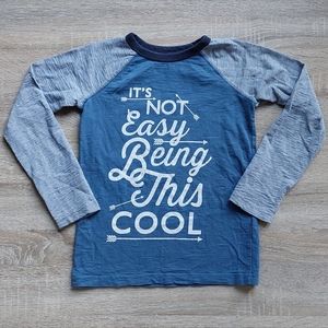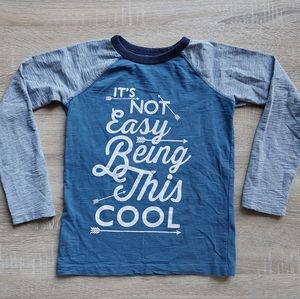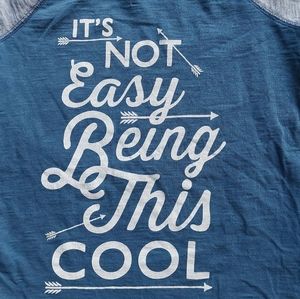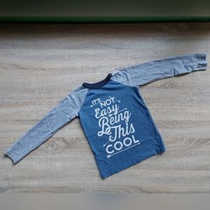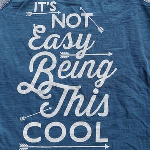 This listing is for a Mini Boden (or do I just call it Johnnie B?) long-sleeve blue & gray tee that says "it is not easy being this cool" in good used condition. While I took a photo of the tag & I really cannot see the date. Hubby is going to try & change insurances & add eye coverage bc my problems seeing is beyond "normal" at this point. I said this in the domino sweatshirt listing I think. Last time my vision was checked it was 20 over several hundred....many years ago :P I am very near-sighted so what does that have to do w/seeing that print? If anyone has any idea what that says please let me know.