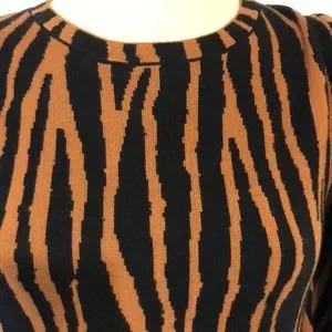 In excellent condition. Balloon sleeves. Brown and black. PTP 17.5” length is approximately 23”. Sweater has a little stretch to it.