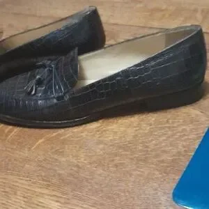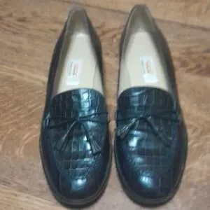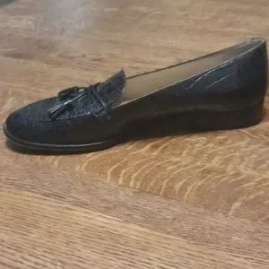 These are vintage size 8.5 Black leather tassel loafers made in Italy by Talbots in amazing condition!