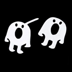 “Bubble Boy” Cartoon Comic Round Robust Plump Chubby Chunky Butterball Balloon Open Mouth Shouting Yelling Eating Yawning Doughnut Silly Goofy Humorous Quirky Funny Silver Dainty Mini Stud Post Earrings. These adorable plump little guys have cut-out eyes & wide open mouths. The thin arms and legs are dichotomous compared to the round donut-shaped body. Looks like a cartoon, comic book, or old school video game character (think pac-man). So cute & quirky! Kids, teens, or adults. New.