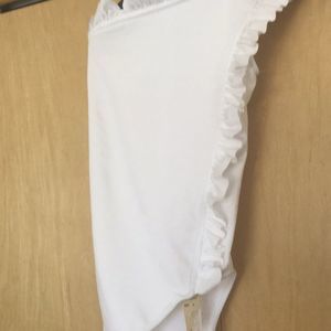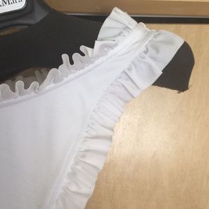 Flounced one-shoulder neckline and side-seam