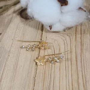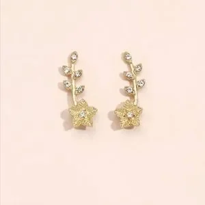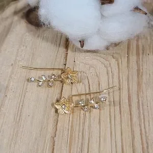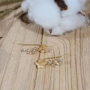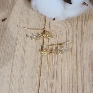 ✨️✨️NEW✨️✨️STUNNING!! FLOWER Ear Climber Earrings with Tiny CZ'S in GOLD Plating