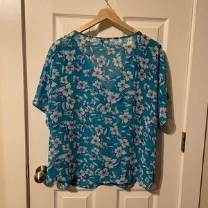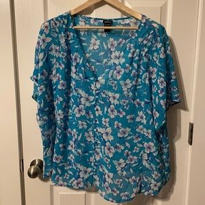 Torrid sheer floral teal blouse w/ buttons sz 2x
