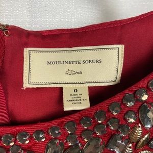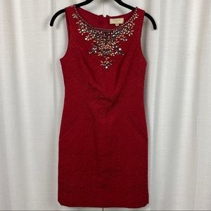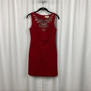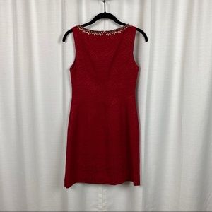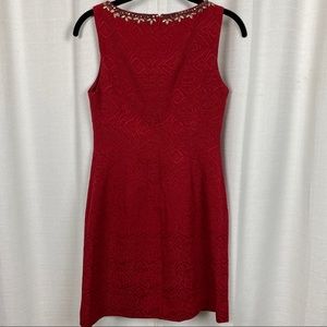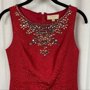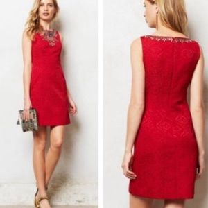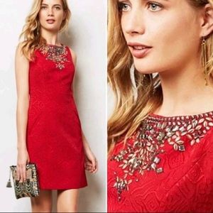 Anthropologie Moulinette Soeurs Red Brocade Embellished Sheath Dress Sz.0