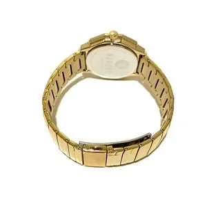 Elegant gold toned watch with studded markers, a studded bezel in a classic bracelet style
