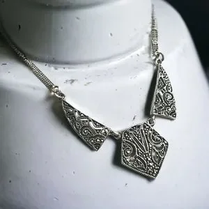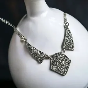 Vintage Art Deco 1920s Marcasite Sterling Silver Pendant Necklace