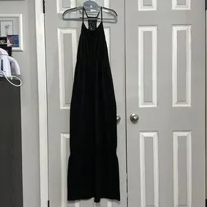 Size small. Black maxi dress. Cinched in waist. Racerback design.