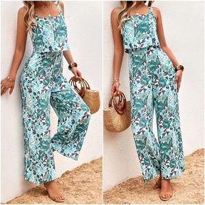 Boho Floral Print Wide Leg Jumper Jumpsuit