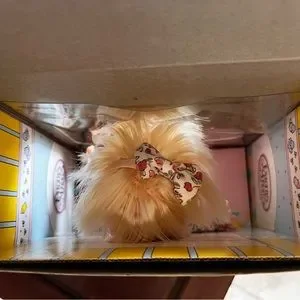 1992 doll still attach to original box. In pink with her hair bow and very blonde hair. Immaculate condition. The box has the marks of the originals tapes. Please, see pictures as part of description. Wishing for a new home…