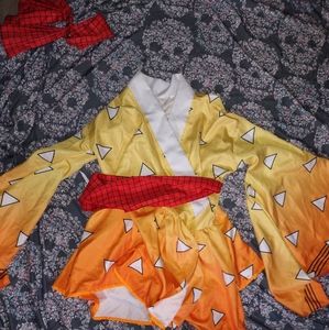 Demon Slayer Agatsuma Zenitsu Kimono Lolita Cosplay Costume. Includes coat, belt, and back bowtie. Does NOT come with black skirt. Size chart is pictured. Retails for $60. In great condition. Comes from a pet-free/ smoke-free home.