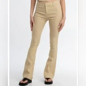 Baige pants, form fitting flare legs. Brand new. Never worn. Didn't fit can't return them.