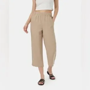 Women's Cropped Wide Leg Trousers. Made from sustainably sourced linen with an elastic waistband.