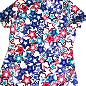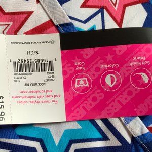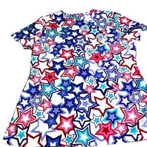 Scrubstar Women Fashion Collection V-Neck Mock Wrap Scrub Top Stars Small w/Tags