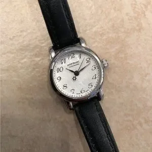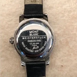 Mont Blanc Meisterstuck ladies watch in pristine condition. Limited edition. Stainless steel – automatic movement, water resistant, Swiss made. This has been worn two or three times maximum. Super comfortable and easy to read numeric dial featuring a second hand with a cute star!