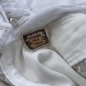 Most likely fits a size small, but see measurements. Size tag was cut out. Measurements seem to align with a Gunne size 7 or 9. Fit dress form with a 25” waist but it didn’t zip up on the 37” chest.