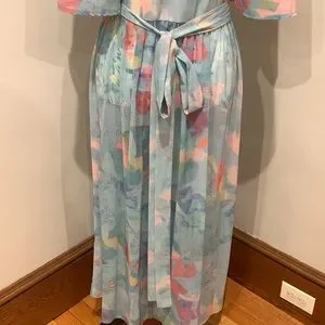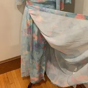NWOT Annabelle 87 Blue Patterned Full Length Wrap Dress w/ Short Sleeves