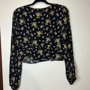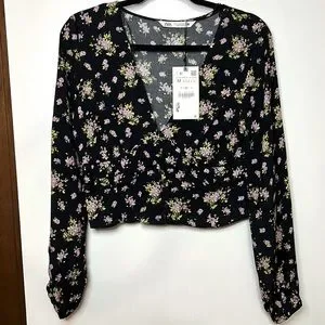 This gorgeous Zara cropped shirt has long sleeves and a beautiful floral pattern. It is made from 100% viscose which means it is very flattering on any body type. The arms are flowy and there is a tiny button closure at the wrist. This beautiful shirt is brand new with tags.