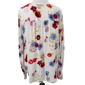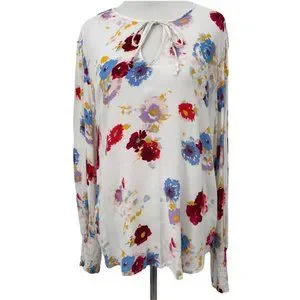 Lucky Brand SZ Large Multicolor Red Floral Blouse Bold Flower Long Sleeve Top