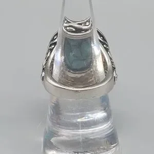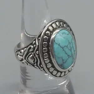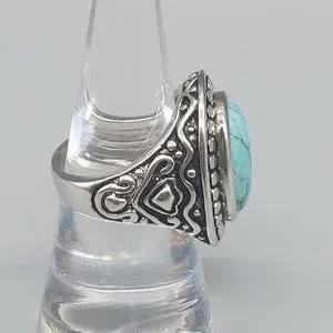 Silver tone ring size 6.75. Faux tuquoise designed center oval acrylic.