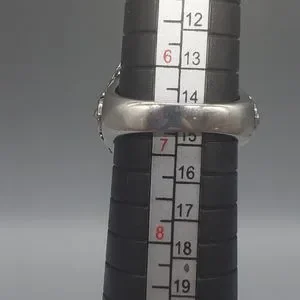 Southwest Style Ring Silver Tone Studded Blue Center Boho size 6.75