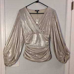 ๐3for$25 Express Metallic Champagne Balloon-Sleeved Top NWT