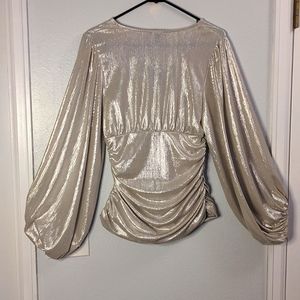 Super fun metallic top from Express with tags still attached. Very flattering ruching and balloon sleeves. Incredibly stretchy!