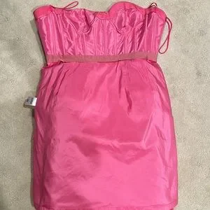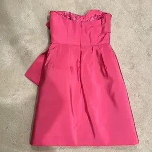 Oscar de la Renta strapless cocktail dress featuring ruffle bow front. Sweetheart neckline. Sleeveless. Side slip pockets. Waist seam. Lined. Stunning dress, classic timeless piece Worn Once