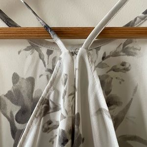 LOFT Tank Top Gray Ecru Bird Print Halter