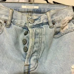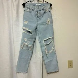 Only worn once, so it’s in a really good condition! High waist straight jeans & distressed