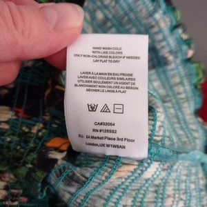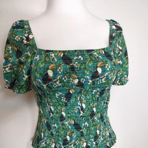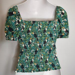 Dolan Left Coast Green Smocked Puffy Sleeve Tropical Print Summer Top